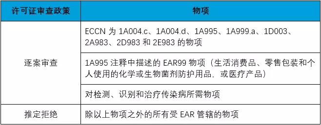 (1)對受美國《出口管制條例》(EAR)管控的所有物項(xiàng)施加許可要求;(2)對受EAR管控的所有物項(xiàng)采取推定拒絕的許可審查政策。
