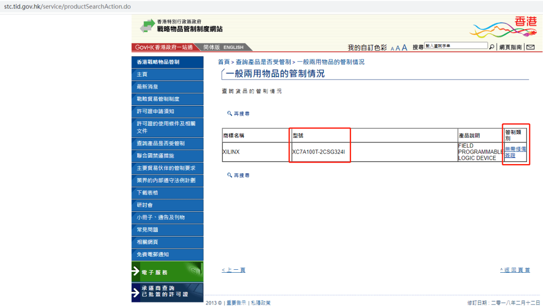 2. 賽靈思(Xilinx)官網(wǎng),ECCN查詢頁。